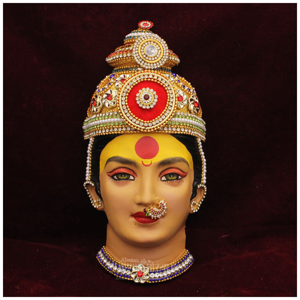 Make: Made of fiber. Devi face Adron shringar Base with zardosi work, Different colours, moti, stones.