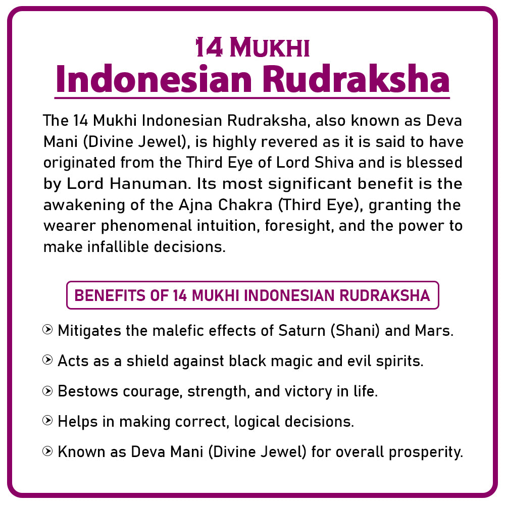 Authentic Indonesian 14 Mukhi Rudraksha: Natural fourteen-faced Rudraksha bead from Indonesia, carefully hand-picked and energized for divine power.