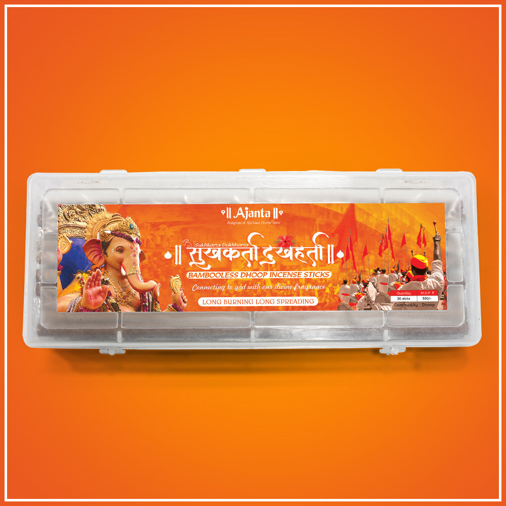 Ideal for Ganesh Chaturthi celebrations, festivals, and religious occasions, Ajanta Sukhakarta Dukhaharta dhoop sticks are a symbol of devotion and tradition, beautifully combining spirituality with a sustainable and natural approach.