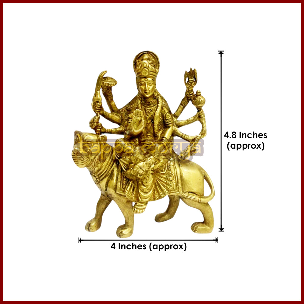 Designed with fine detailing and a traditional brass-finish metal look, the idol reflects a classic and devotional appeal suitable for home mandir, temples, and spiritual décor. The multiple arms holding sacred weapons signify the destruction of negative energies, while the blessing hand in Abhaya Mudra offers fearlessness and divine assurance to devotees.