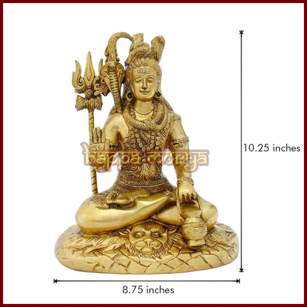 Seated on a decorative base, this Adi Yogi Shiva Murti radiates divine energy, making it ideal for home mandir, pooja rooms, meditation spaces, yoga studios, or spiritual décor. The warm golden tones of brass add a timeless and auspicious presence to any setting.