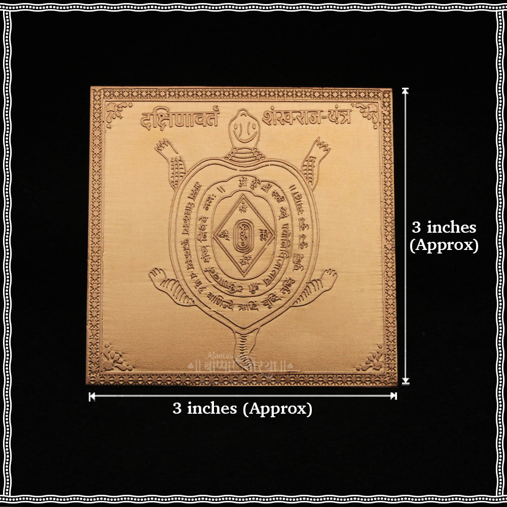 The Dakshinavarti Shankh Raj Yantra (3x3 Inches) is a highly auspicious spiritual symbol known for attracting wealth, prosperity, and divine blessings. This sacred Yantra is beautifully engraved on a golden brass plate featuring a tortoise design, representing stability, protection, and growth.