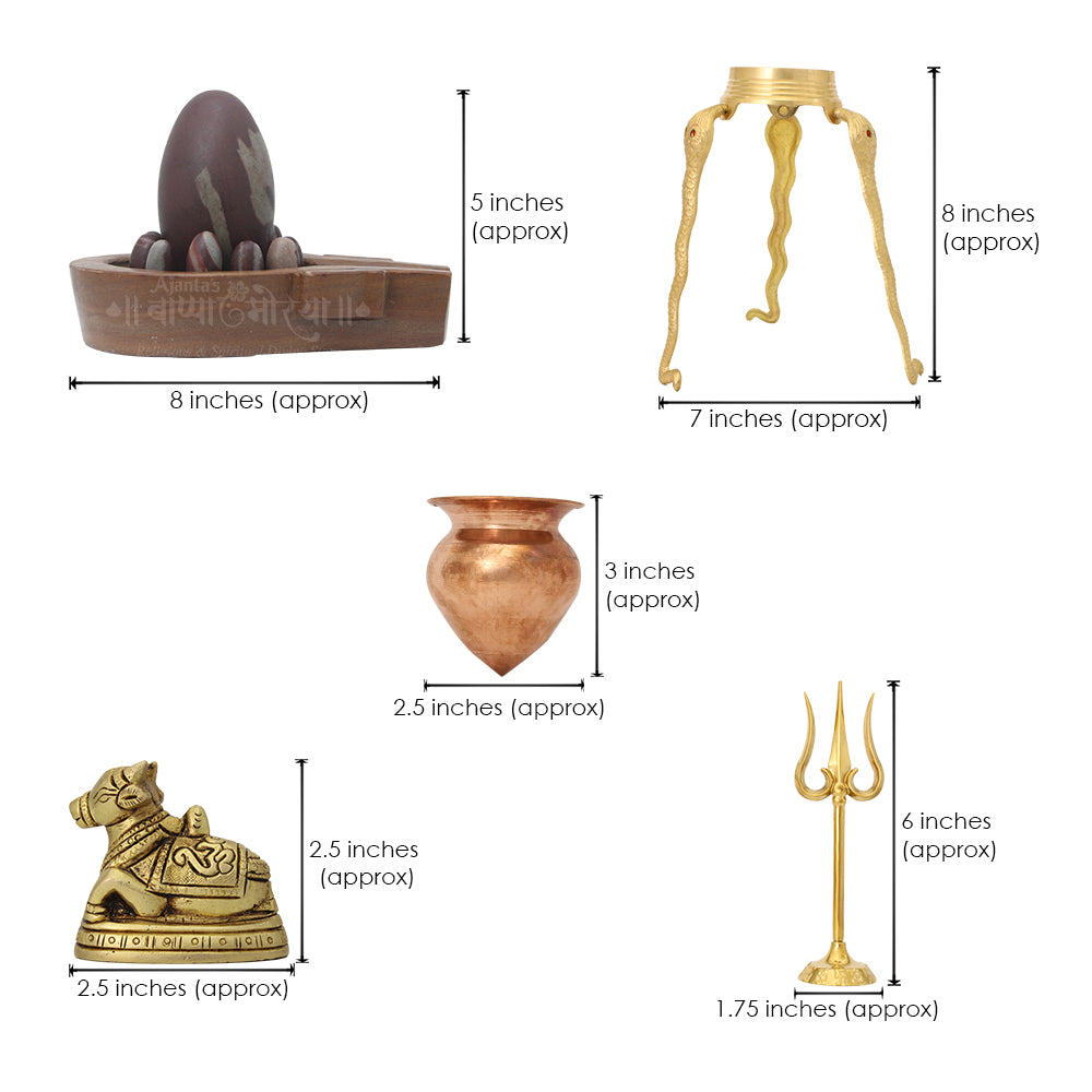 Shivling set: 5 inches (H) x 6 inches (W) x 8 inches (L) approx
