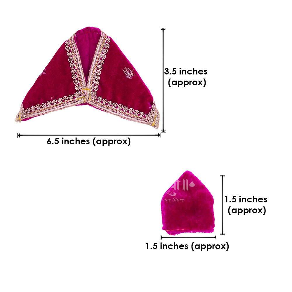 Perfect for Small Idols – Approx. Shawl size: 6.5 x 3.5 inches & Topi: 1.5 x 1.5 inches.