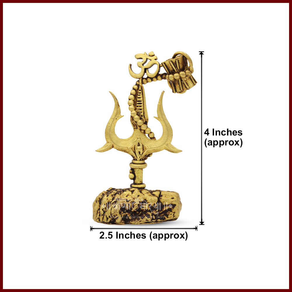 Bring divine energy and spiritual strength into your space with this beautifully crafted Lord Shiva Trishul Idol featuring the sacred Om symbol, Damru, and Rudraksha mala design. Made with a traditional antique finish, this compact 4-inch idol is perfect for home temples, office desks, car dashboards, or gifting during Mahashivratri and Shravan.