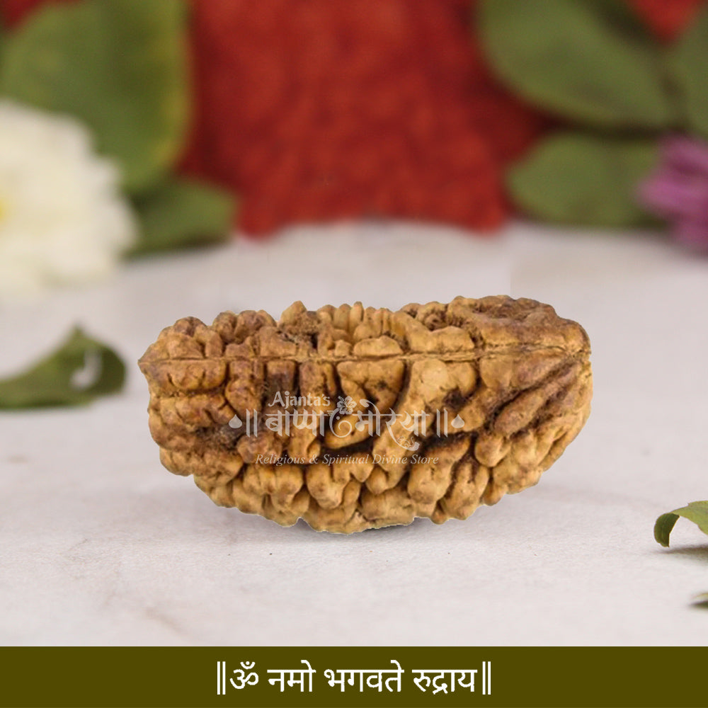 An authentic 1 Mukhi Rudraksha features a single natural line (mukha) running from top to bottom with a distinct thorny texture, representing the unity of the individual soul with the Supreme.