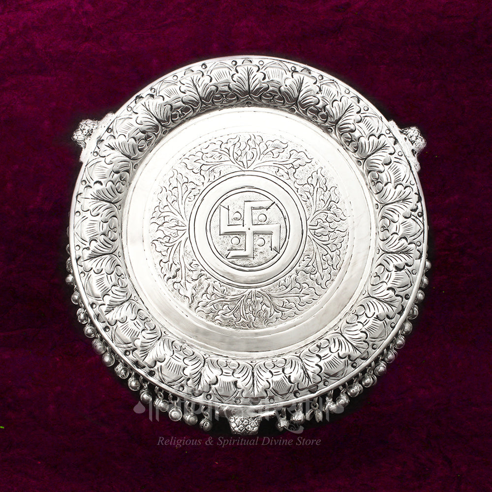 • Premium Quality Material: Crafted from high-quality Pure Brass With  Silver Oxidized Polish  Pooja Plate  , ensuring durability and a luxurious finish.