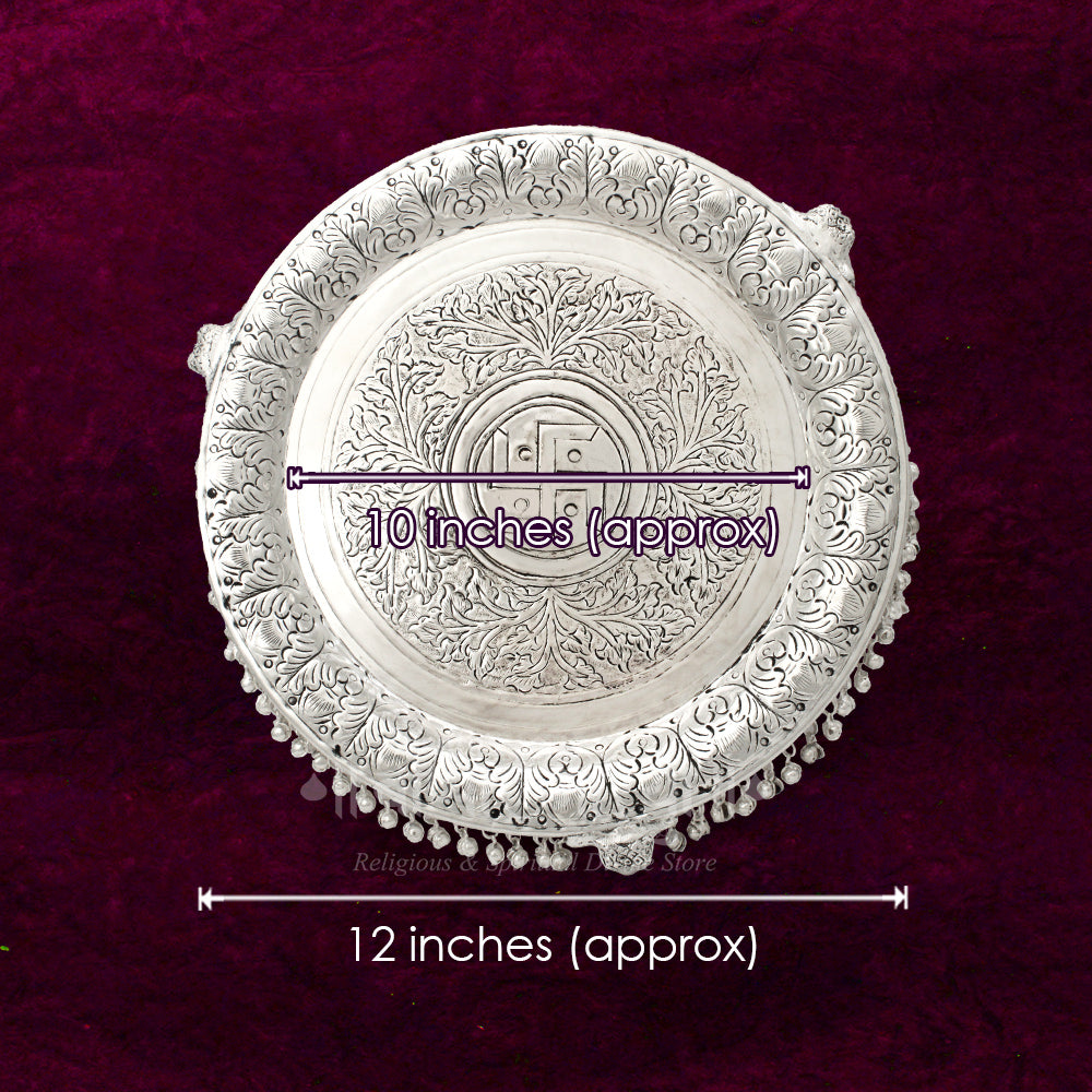 Elegant Pure Brass With Silver Oxidized Polish Pooja Plate with Swastik Design – 12 Inches | Traditional Temple & Home Decor