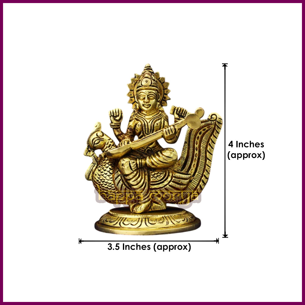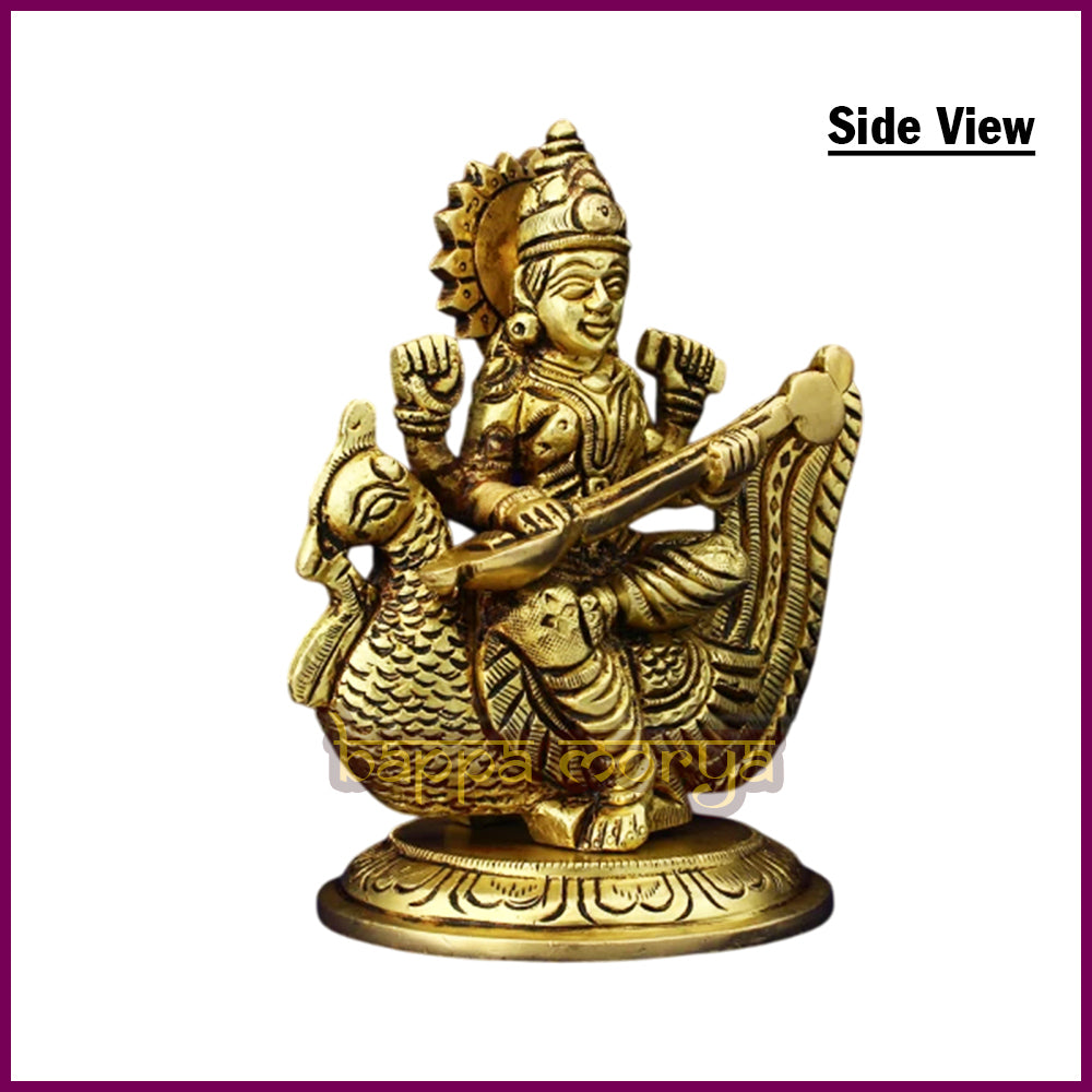 Divine Representation: Beautifully crafted Brass Murti of Goddess Saraswati, the Gyan Devi, symbolizing knowledge, wisdom, and learning.