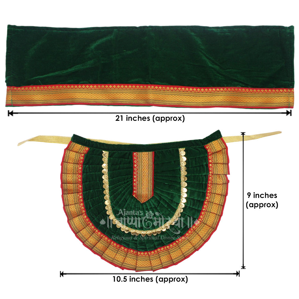 Green Velvet Lehanga Dupatta Poshak for Goddess Idol | Navratri, Margshirsh & Laxmi Puja DecorationNavratri Goddess Mata Rani Poshak, Maa Laxmi, Durga, Saraswati, Radha Shringar for Kalasha Pooja (9 Inch Poshak)