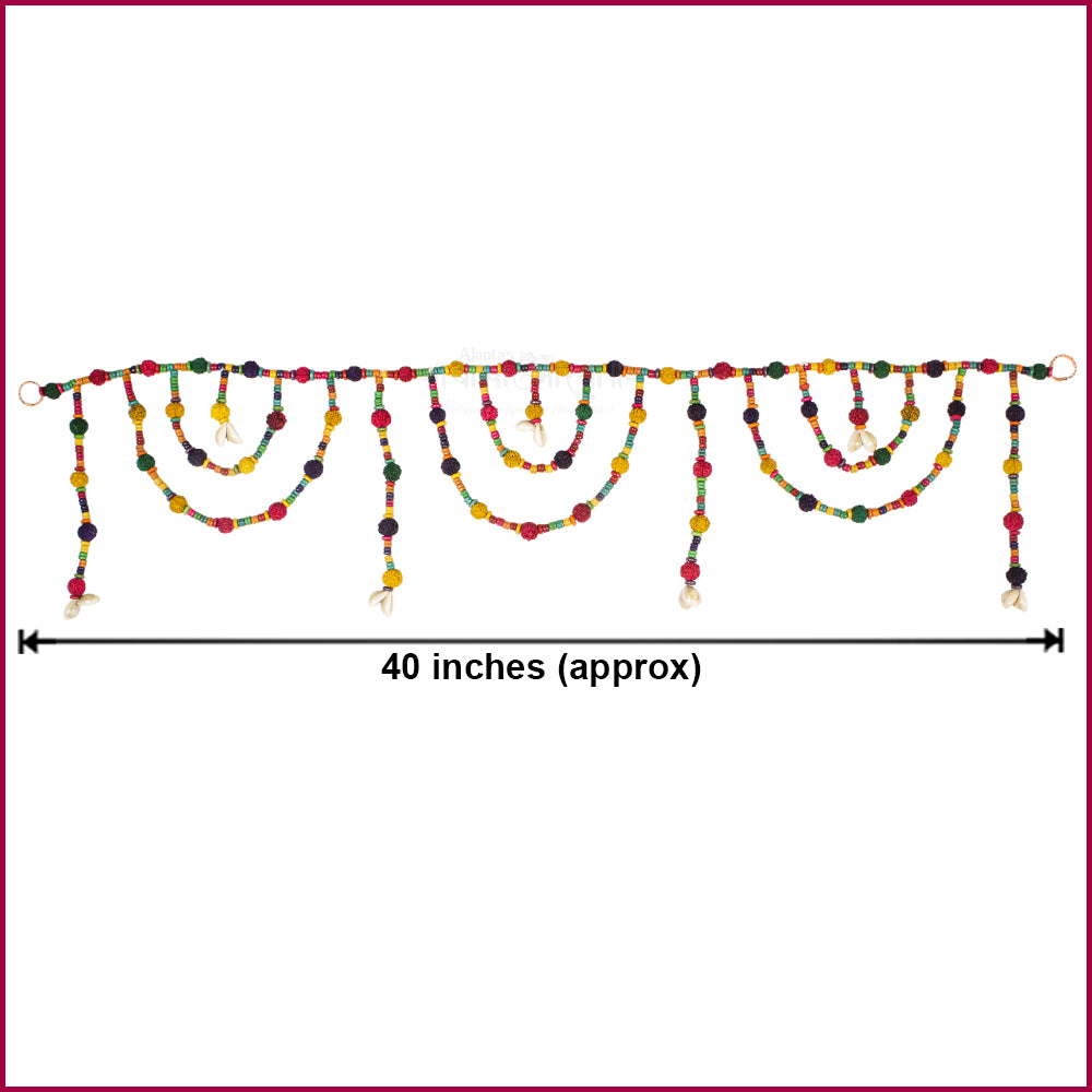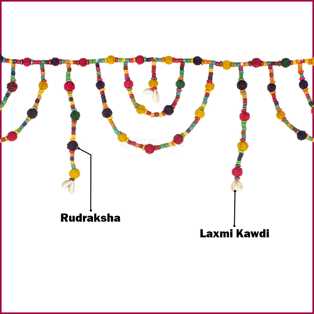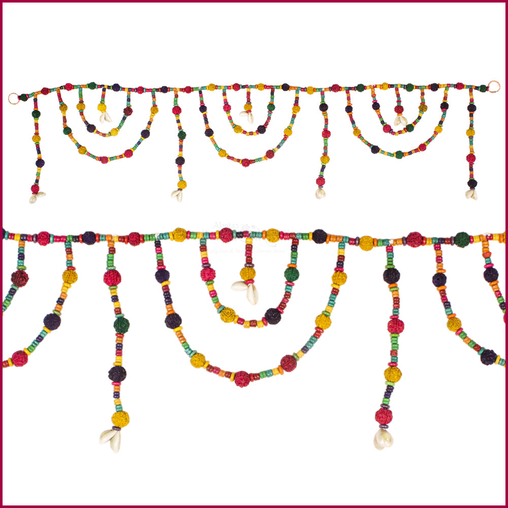 This Handmade Colorful Rudraksha Toran (Bandarwar) is thoughtfully designed to bring auspiciousness, positivity, and spiritual charm to your home. Crafted with sacred Panchamukhi Rudraksha beads along with colorful and artificial wooden beads, it reflects devotion to Lord Shiva while enhancing the beauty of your entrance.