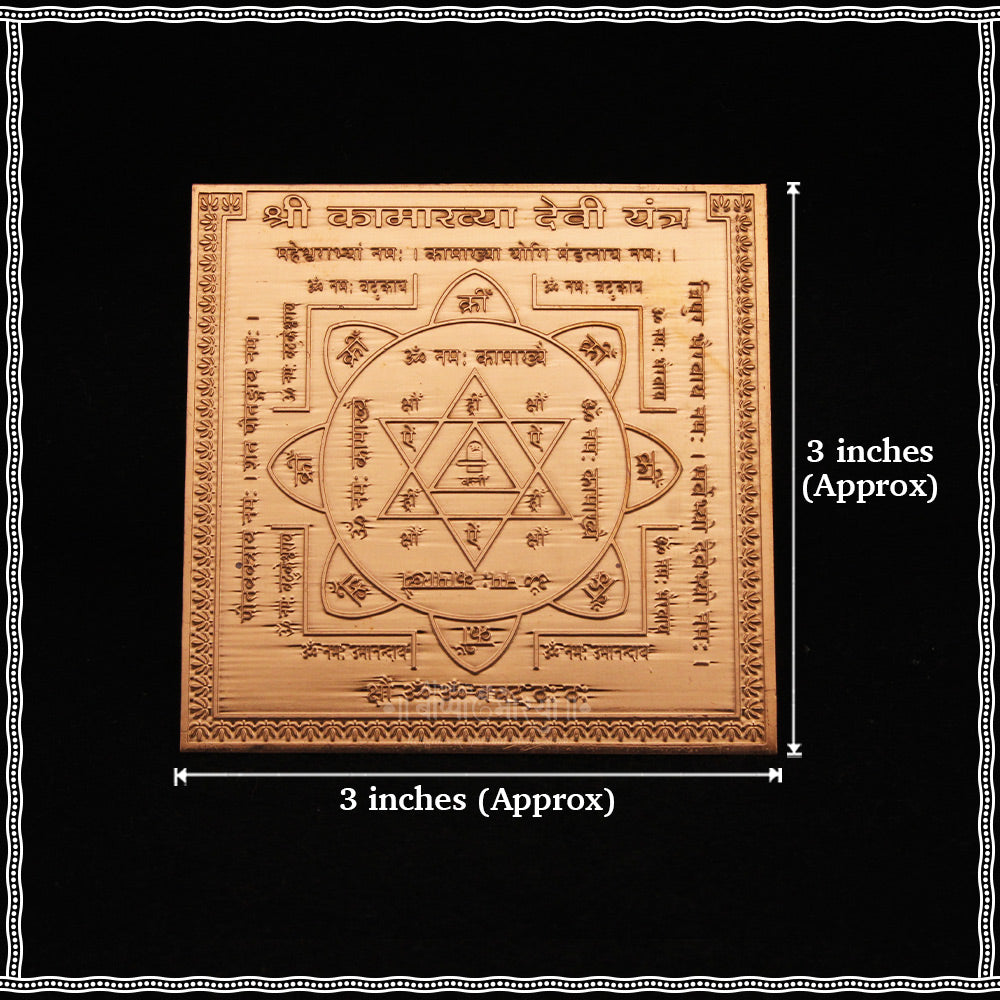Experience the divine energy of Goddess Kamakhya with this pure copper Kamakhya Yantra. Designed to bring protection, prosperity, and spiritual growth, this 3-inch energized yantra is perfect for your home, office, or pooja room.