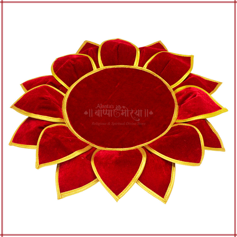 Enhance your pooja setup with this elegant Kamal Aasan Velvet Pooja Mat, specially designed as a comfortable and decorative base for idols. Perfect for Margashish Puja, Navratri, Diwali, weddings, and Haldi ceremonies, this mat adds a touch of tradition and sophistication to your sacred space. Made from premium velvet, it ensures a soft and durable surface for your idols of Lakshmi, Gauri Ganpati, Saraswati, Durga, Varalakshmi, and Ganesh. Its vibrant colors and lotus-inspired design make it a beautiful addition to your pooja décor while keeping the idols secure and elevated.