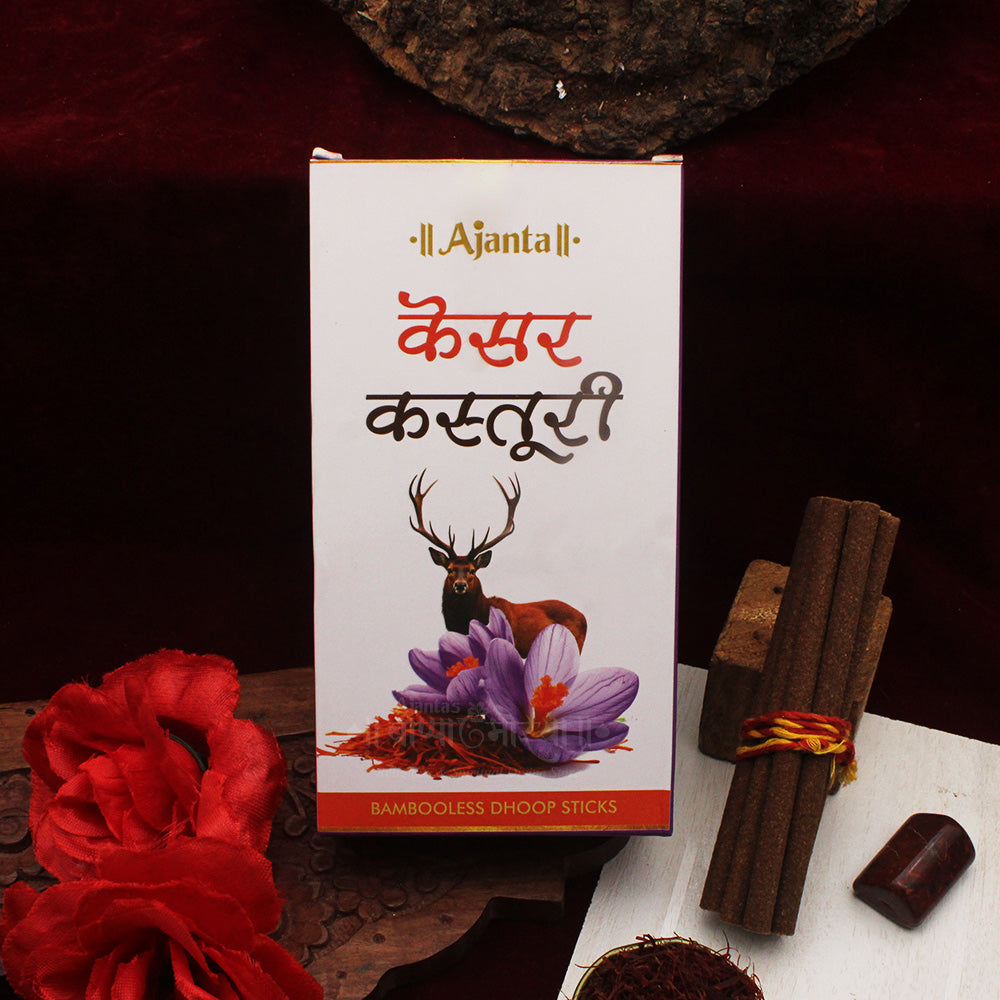 Premium Hand-Rolled Dhoop: Crafted using natural saffron (Kesar) and Kasturi for an exotic, long-lasting aroma.