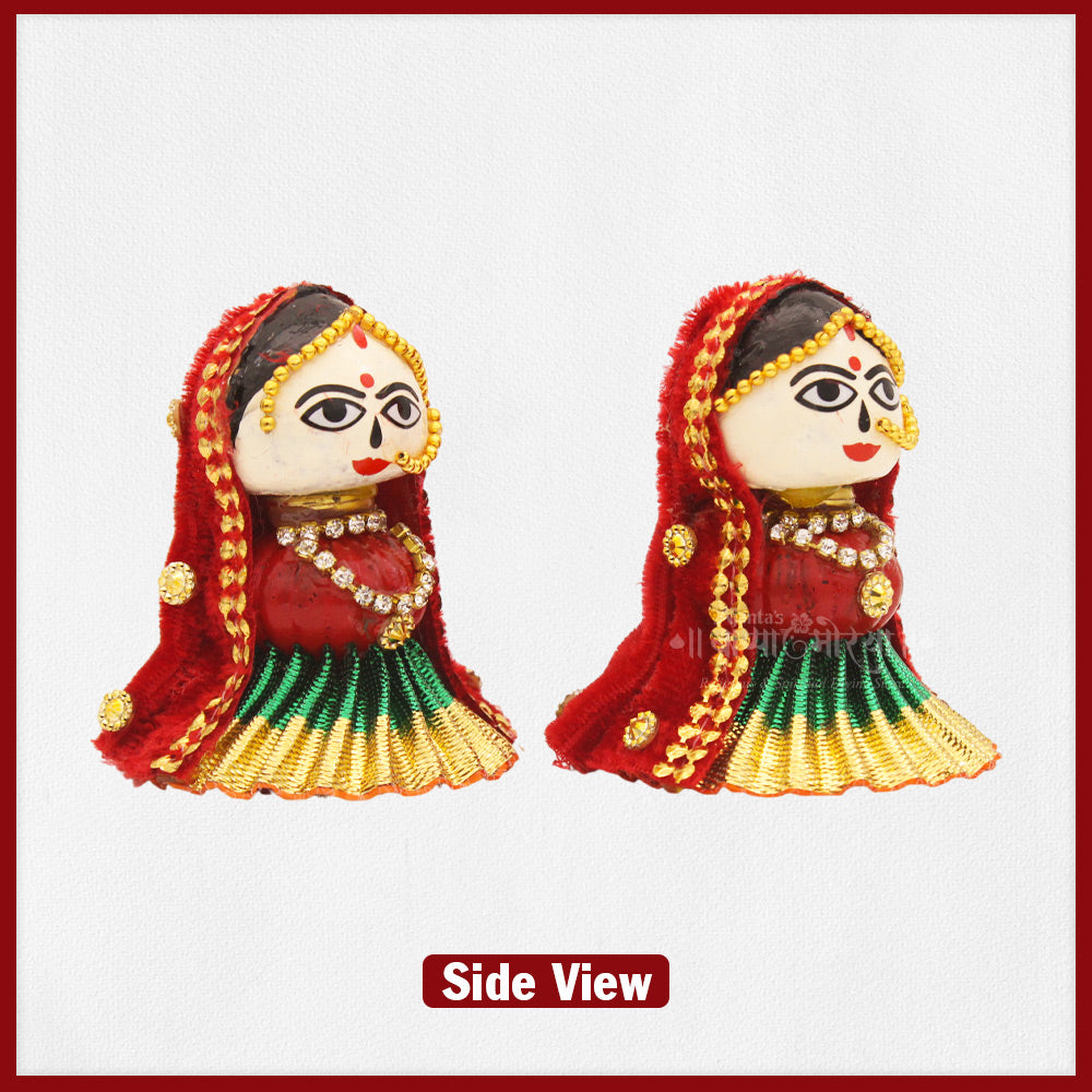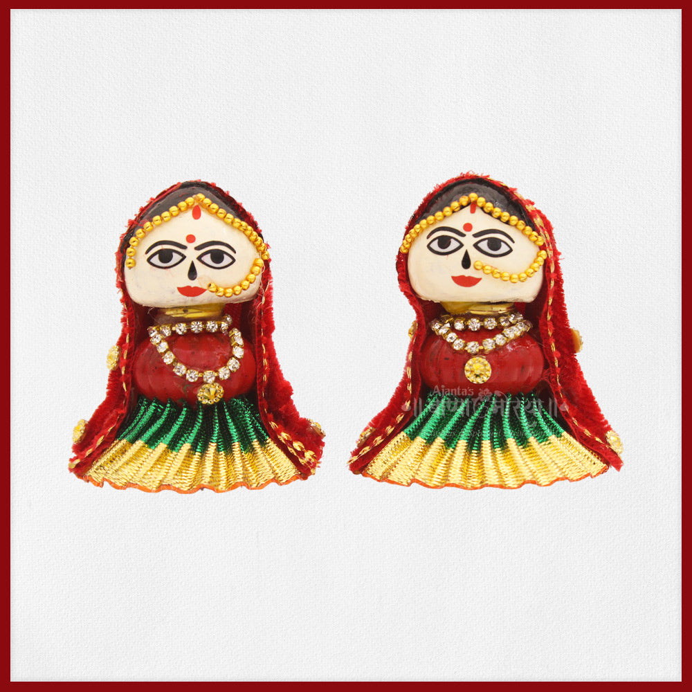 Beautifully crafted Riddhi and Siddhi idols made on traditional betel nut (Supari) craft work, symbolizing prosperity, wisdom, success, and fulfillment. Placing Riddhi–Siddhi alongside Lord Ganesh Ji in your home temple enhances spiritual harmony and invites divine blessings.