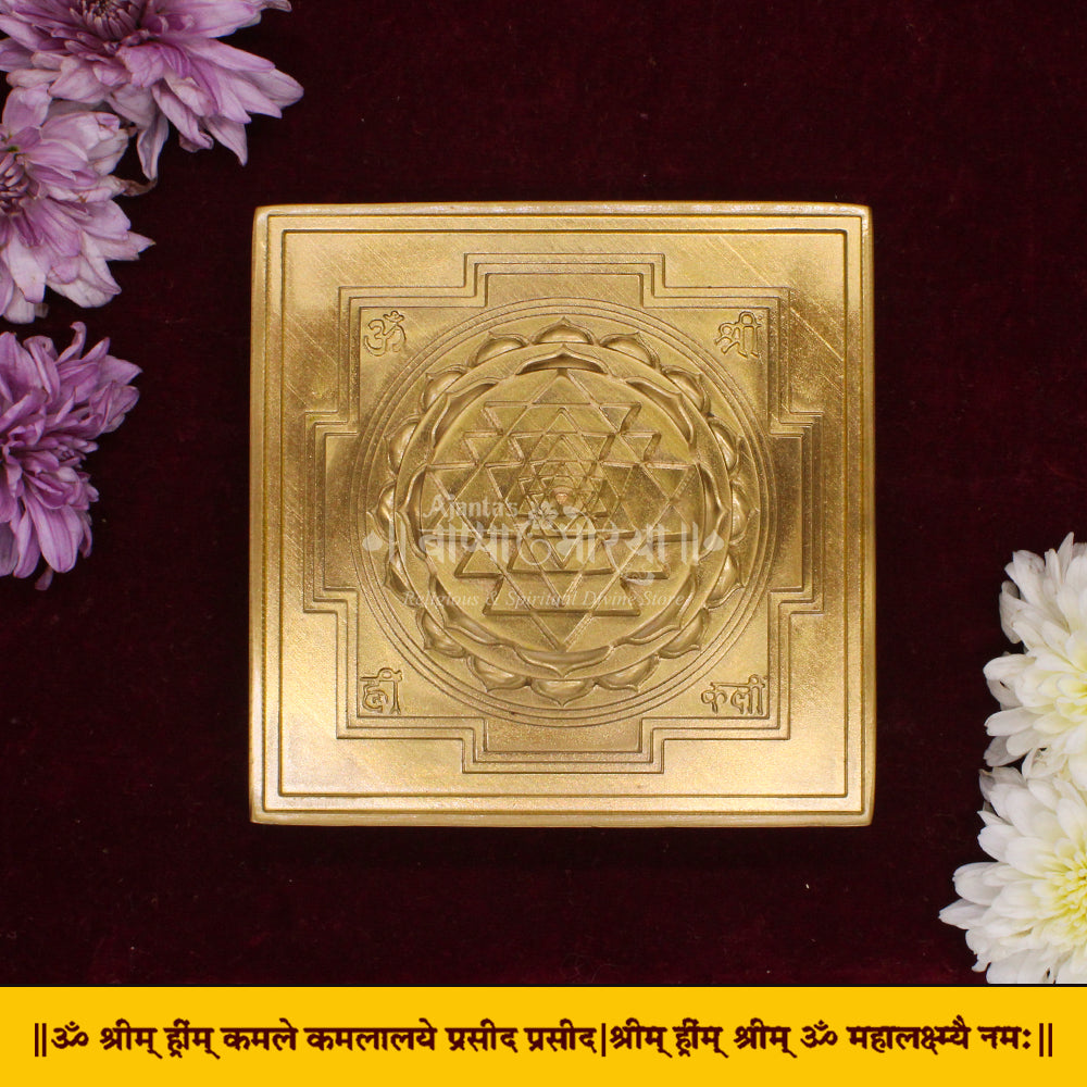 Crafted from solid brass, this yantra features a finely structured Meru design with precise detailing and a smooth, durable finish. The base is engraved with the powerful Mahalakshmi Mantra, which enhances the spiritual energy of the yantra and supports positive vibrations in the surrounding environment.