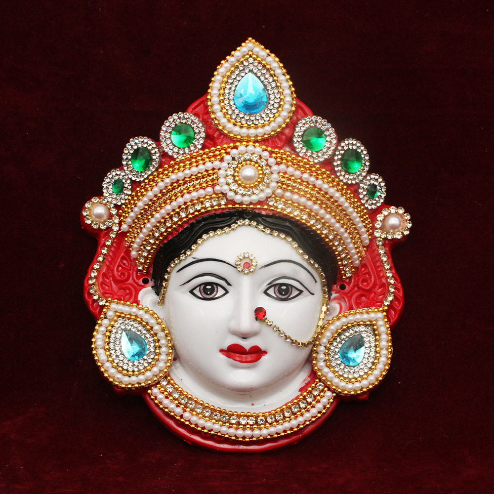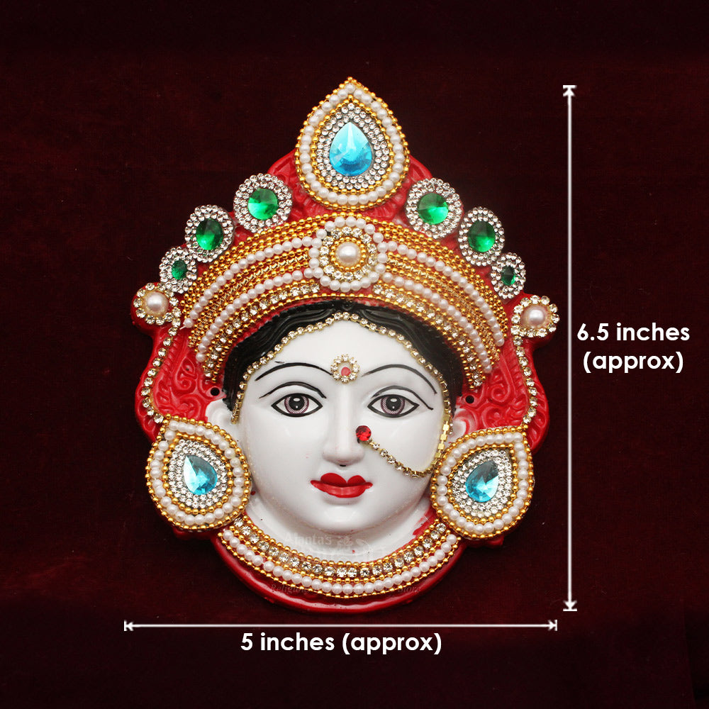 - Make: Made of fibre. Devi faces Adron Shringar Base with zardozi work, Different colours, moti, and stones.