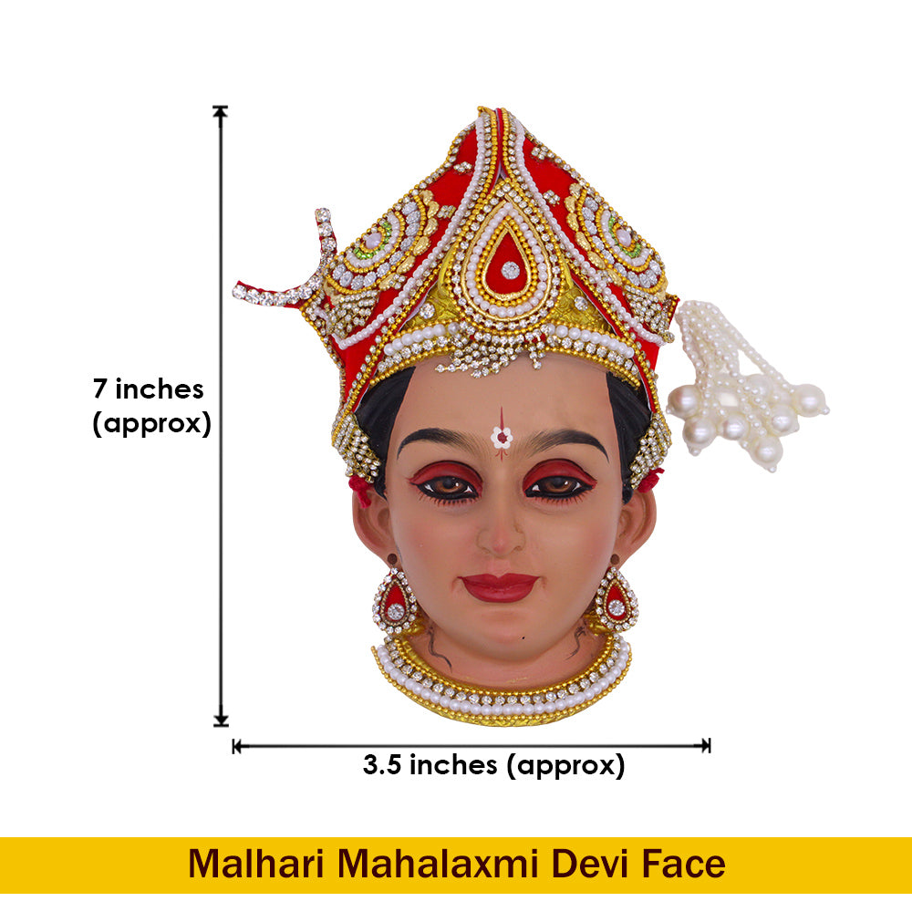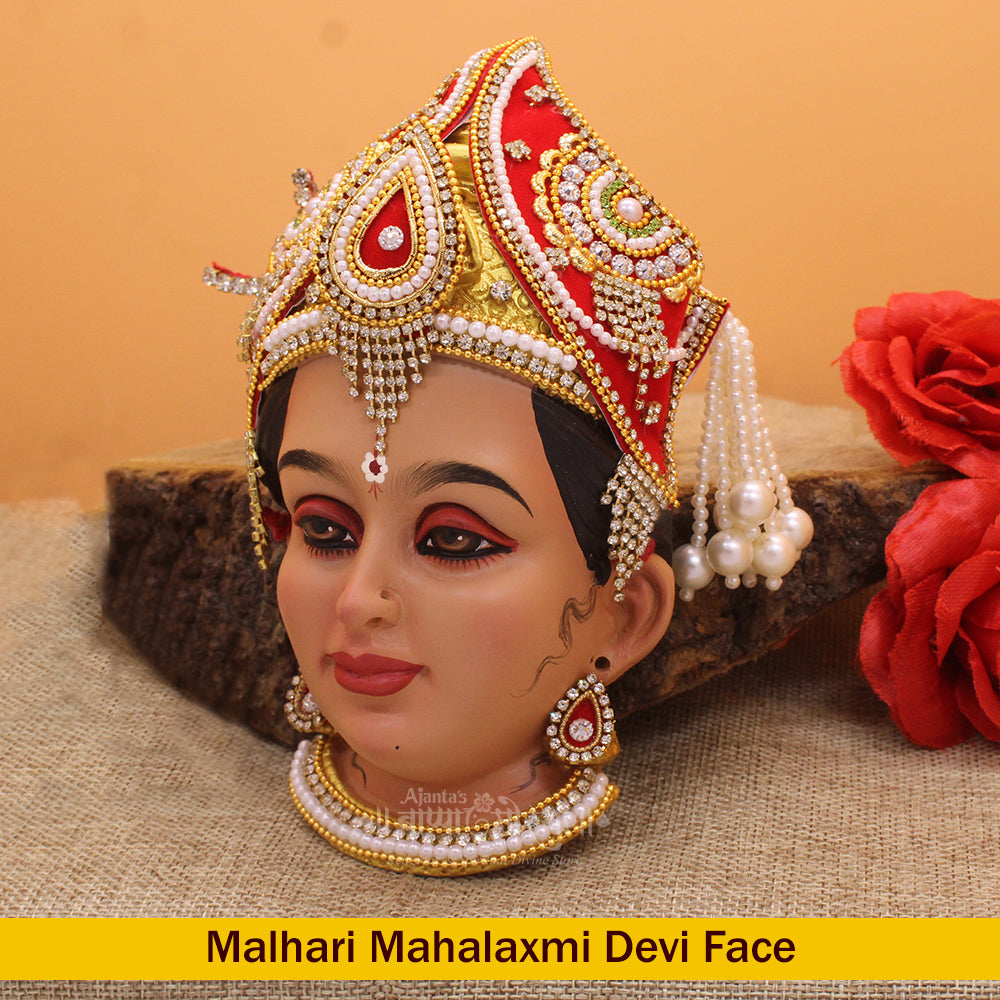 Offer your devotion to Malhar Mahalaxmi Devi with this beautifully handpainted Goddess Face Idol.