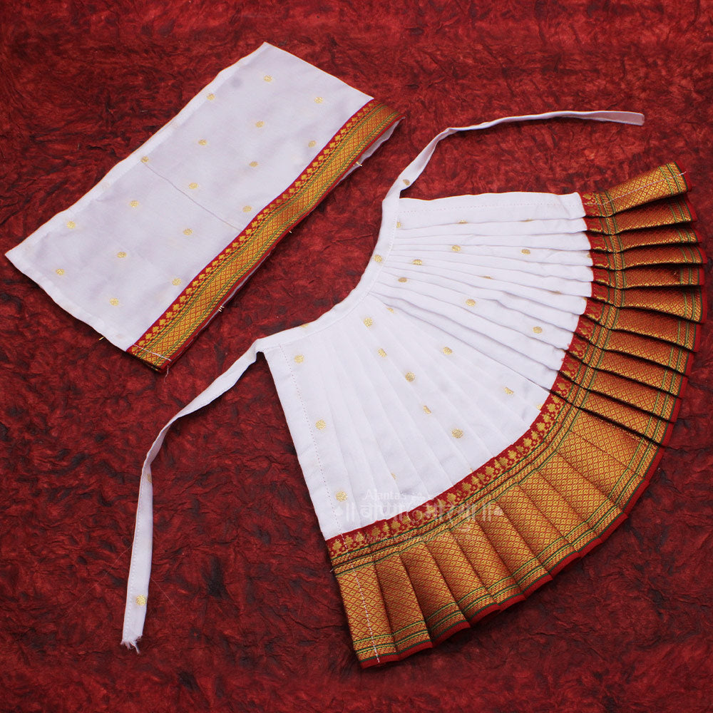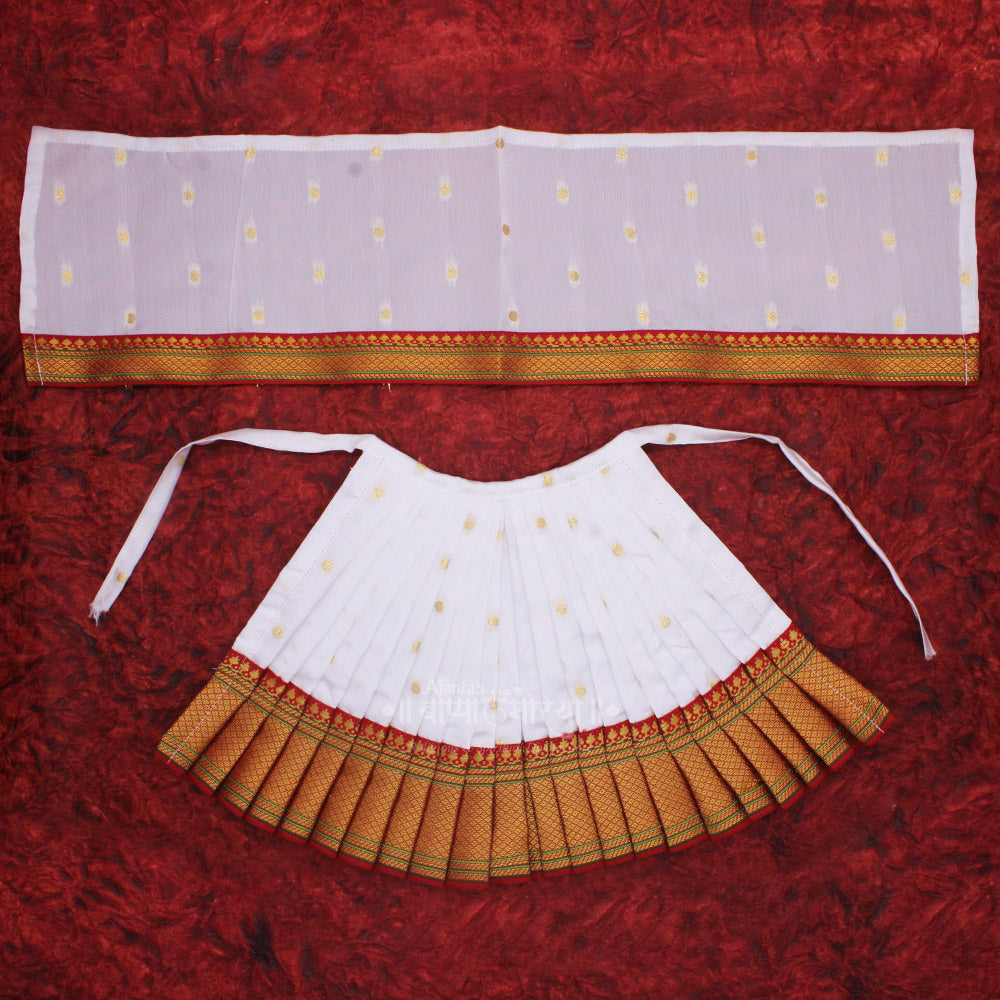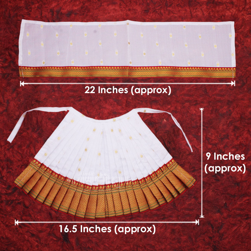 - [COLOUR]: White ,MATERIAL Paithani Silk, ๐ [DIMENSION]: LEHANGA- 9 INCHES (HEIGHT) x 16.5 INCHES (LENGHT) | APPROX.| Dupatta :22(Length) Inches Approx.๐