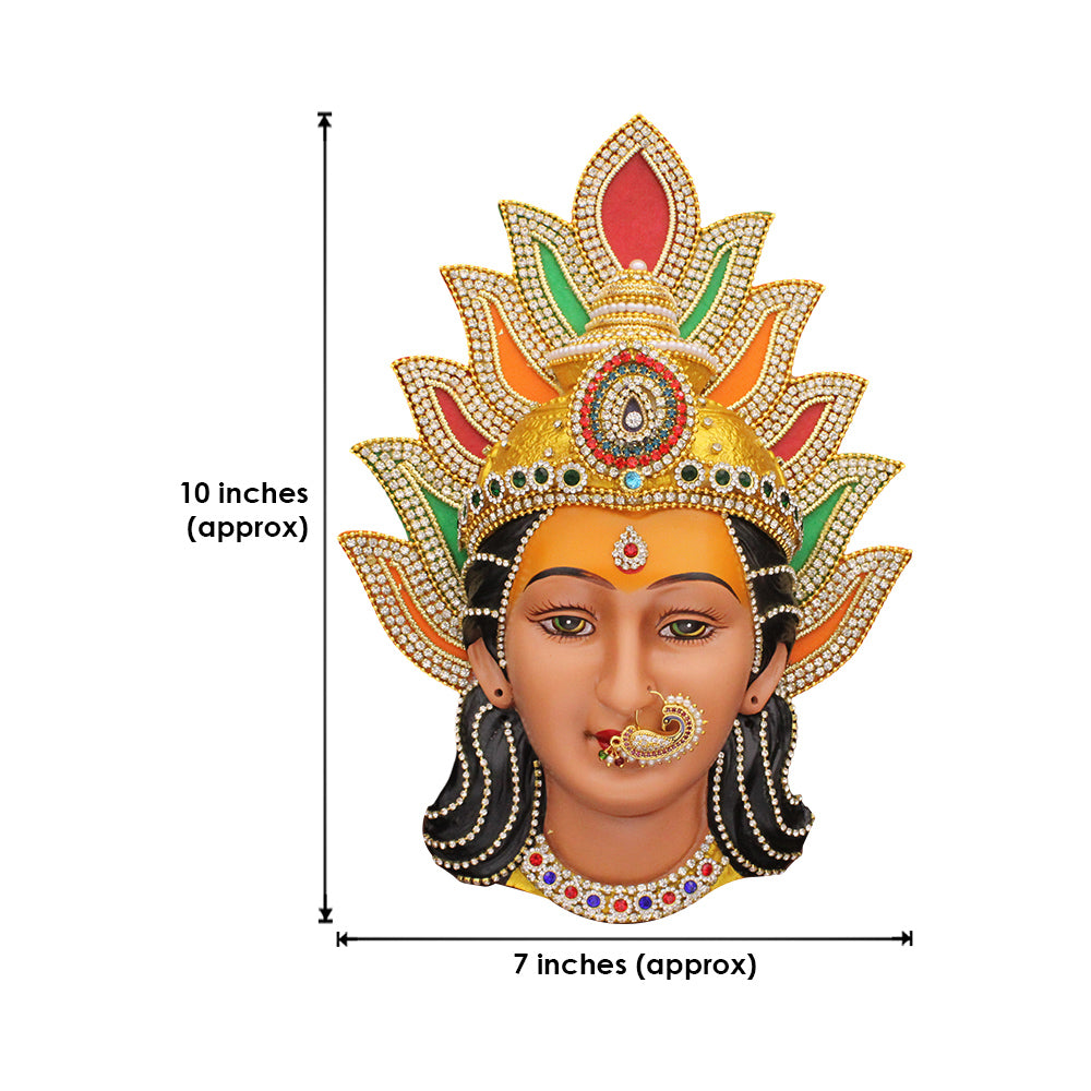 Make: Made of Fiber. Padmasundari Mahalaxmi Devi face Adron shringar Base with zardosi work, Different colours, moti, stones.