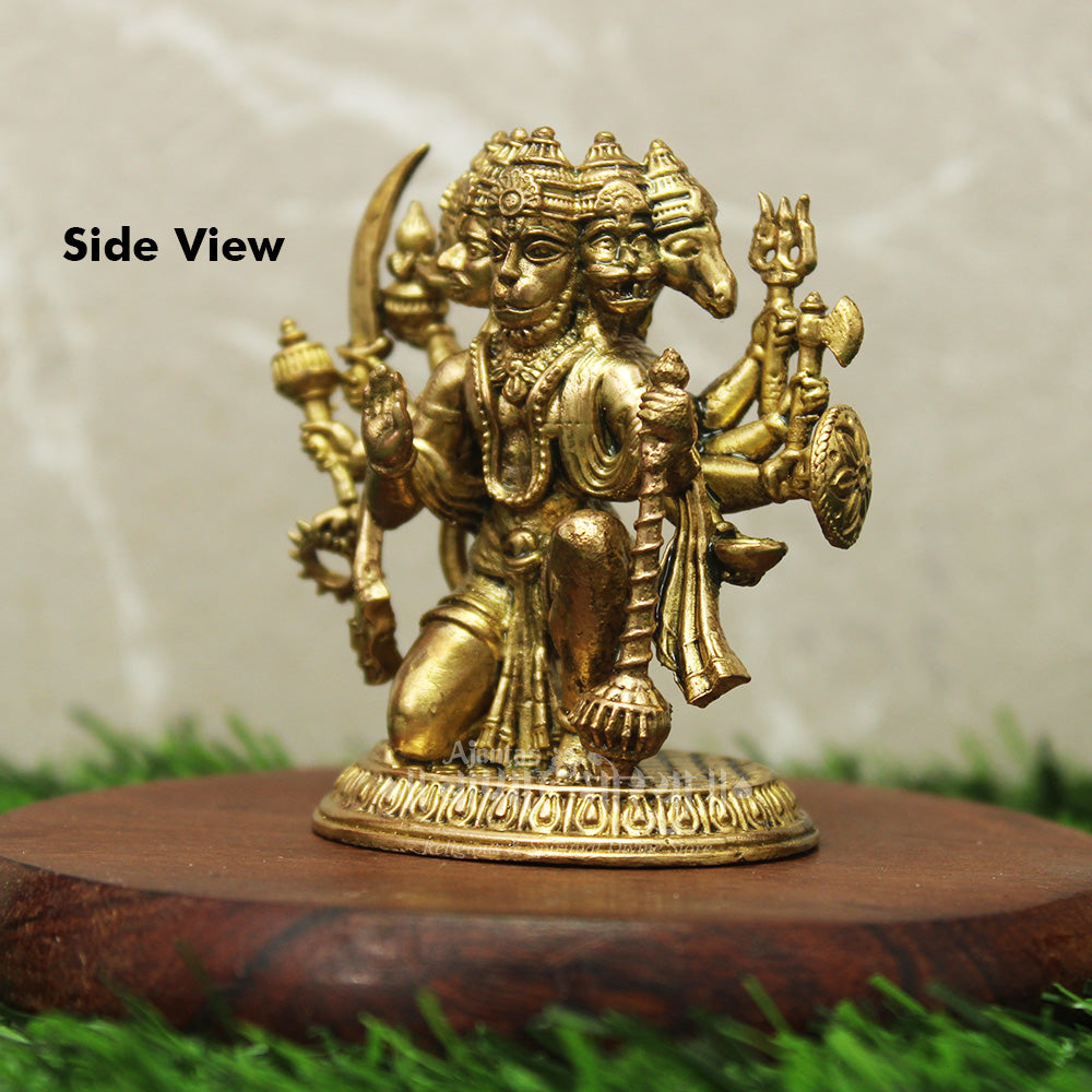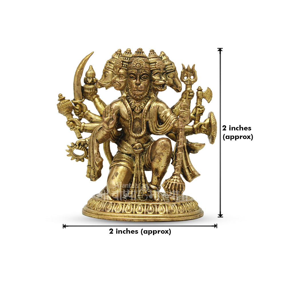 Panchmukhi Hanuman Brass Idol (2 Inch) | Five-Faced Hanuman Murti for Pooja, Protection & Vastu | Mini Religious Statue