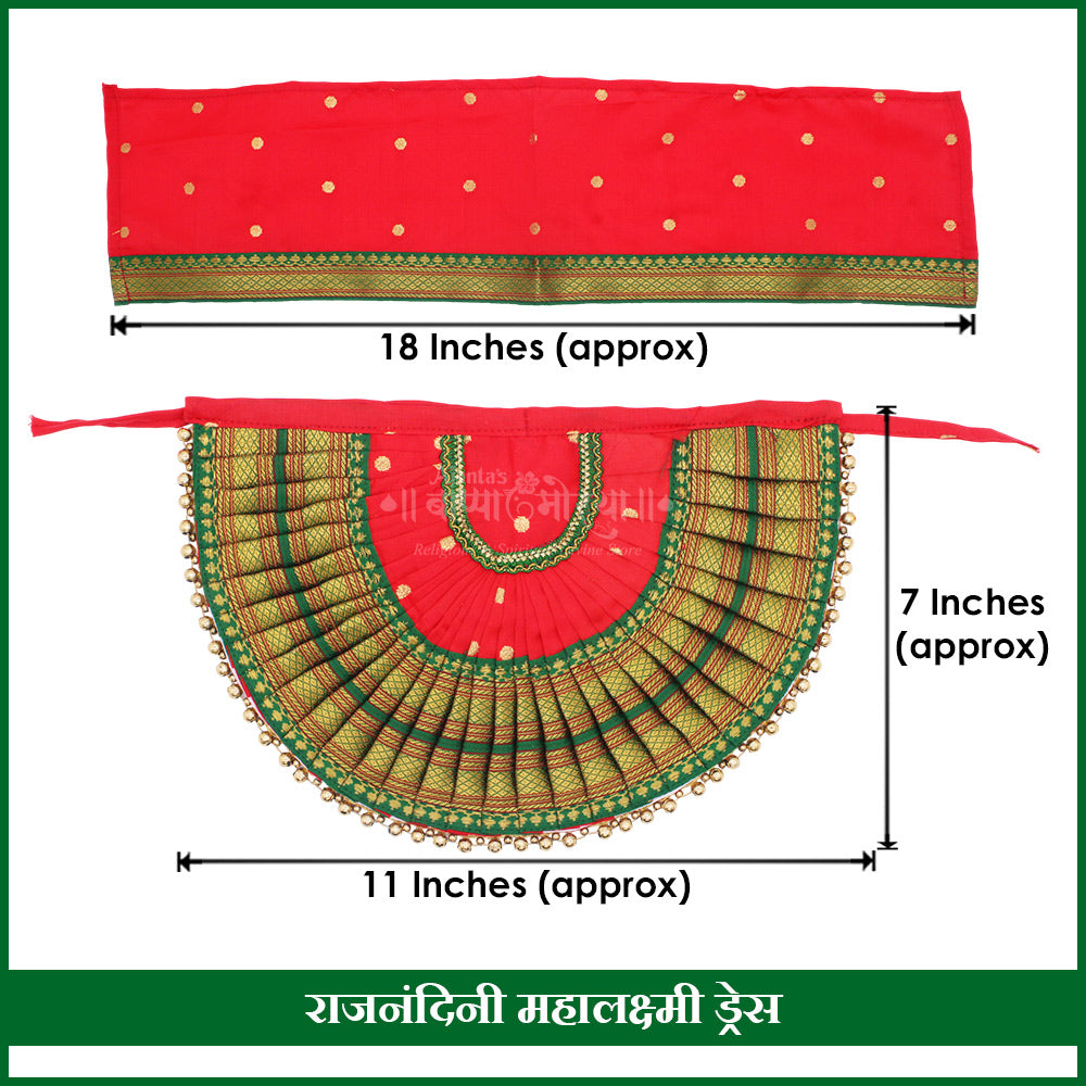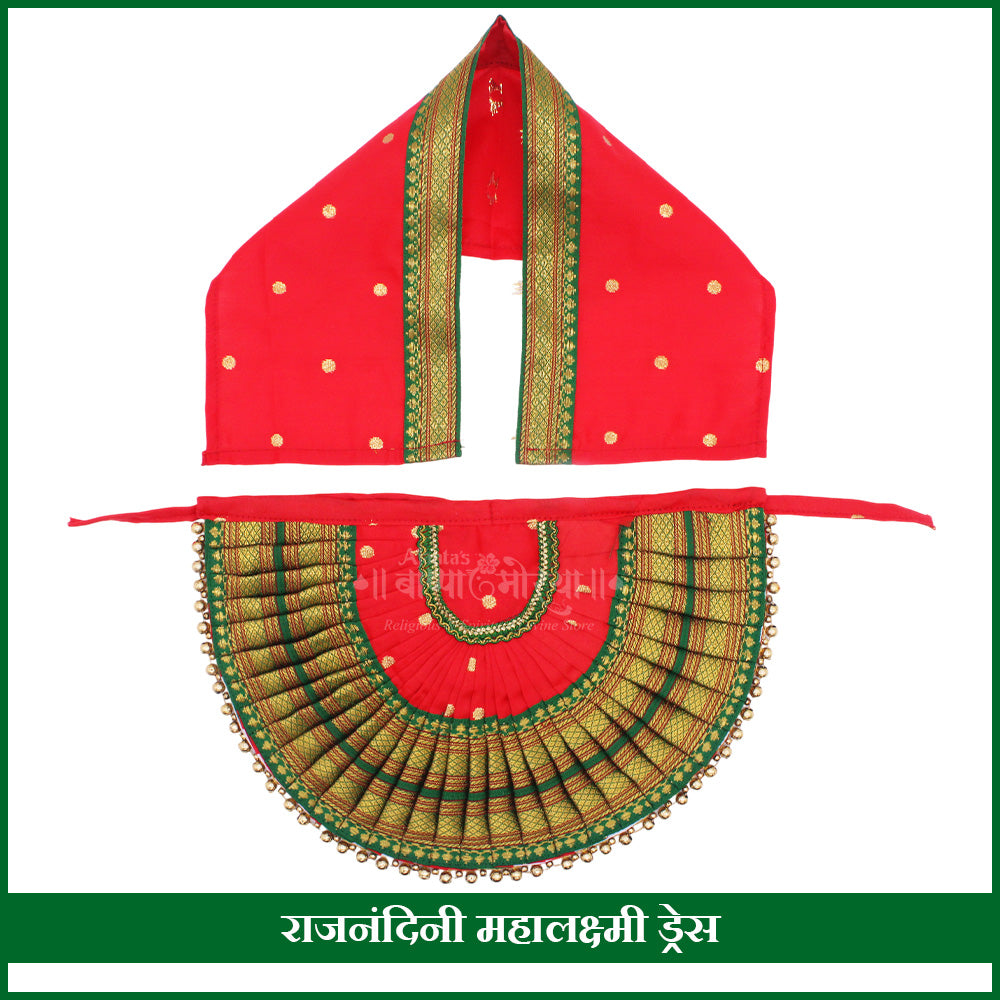 Celebrate the divine grace of Devi with this Red Mahalaxmi Dress Poshak, designed in the sacred Kolhapur Ambabai Temple style. The vibrant red color represents strength, devotion and divine blessings, making it ideal for both daily worship and festival pooja rituals.