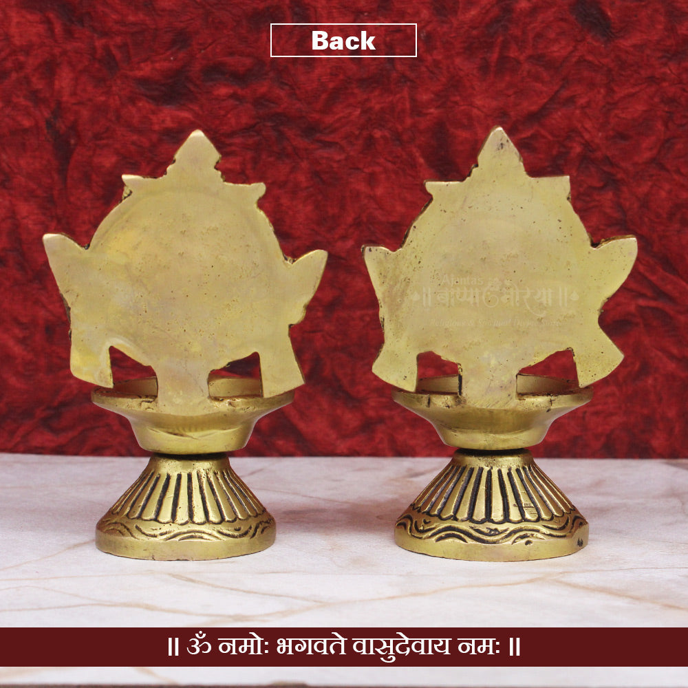 Made from high-quality solid brass, these diyas are strong, durable, and designed for long-term daily pooja use. The antique golden finish enhances the spiritual aura of your mandir, pooja room, or temple, while the wide diya bowl allows a steady and long-lasting flame using oil or ghee.