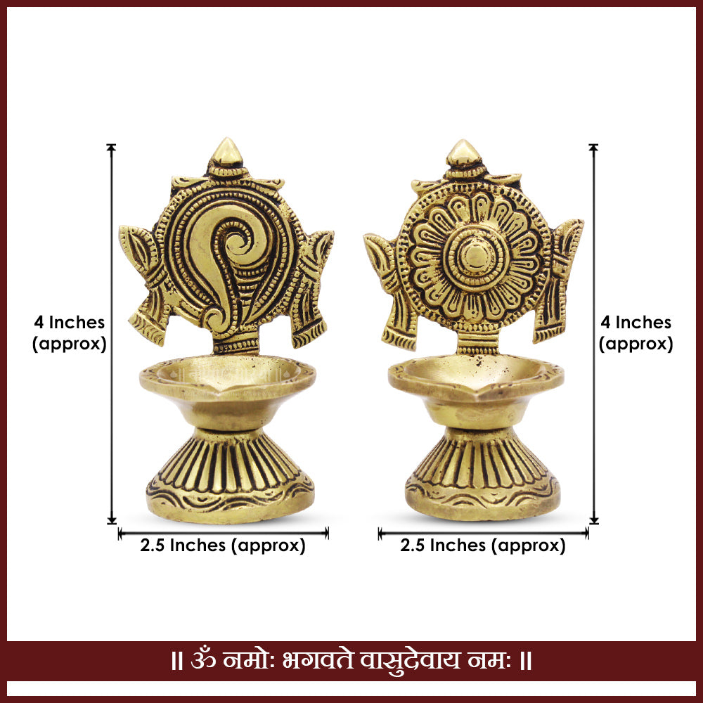 Set of 2 Diyas – Comes as a pair (Shankh + Chakra) for balanced and complete pooja arrangement.