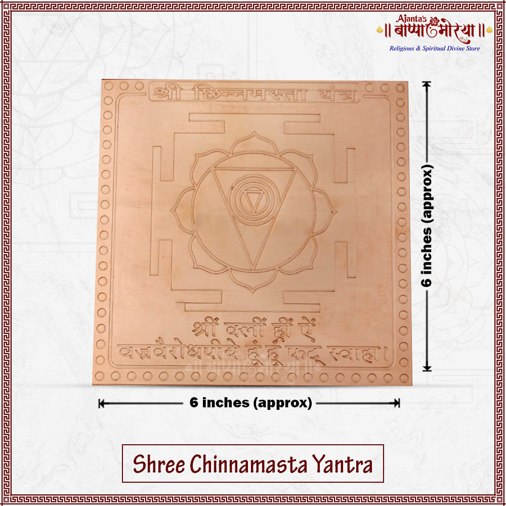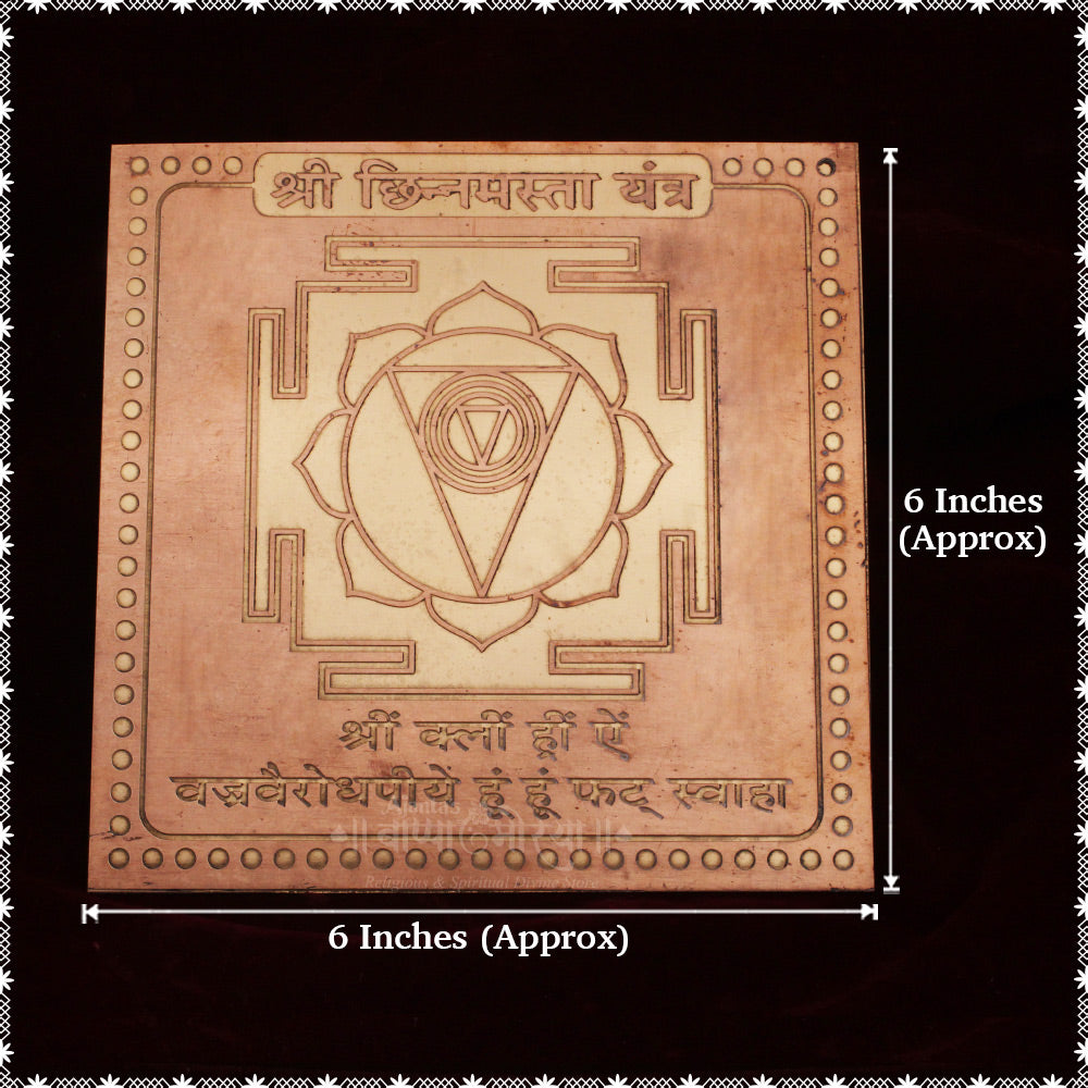 Invoke the fierce and protective energy of Maa Chinnamasta in your home or workplace with this 6×6 Inch Copper Chinnamasta Yantra. Known as one of the powerful Das Mahavidya, Devi Chinnamasta destroys dark influences, removes hidden obstacles, and grants sudden success in life.