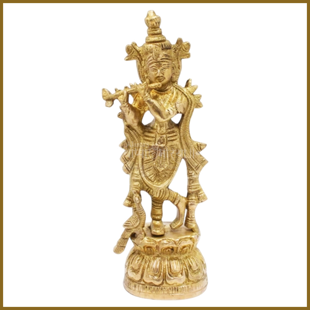 Divine Standing Krishna Idol – Beautiful brass murti of Lord Krishna playing the flute, symbolizing love, harmony, and spiritual bliss.