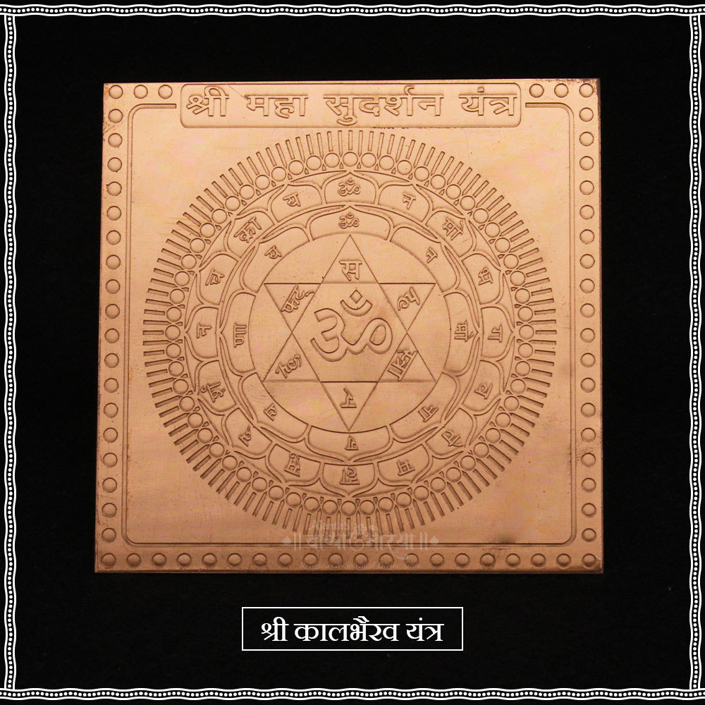 Shree Maha Sudarshan Yantra is one of the most powerful protective yantras associated with the divine Sudarshan Chakra of Lord Vishnu. It is believed to destroy negative energies, evil influences, black magic, obstacles and unseen forces surrounding the devotee. The sacred geometric design on the yantra represents divine radiance, cosmic order and spiritual protection.Crafted in pure copper, this yantra radiates high spiritual vibrations. When placed in your home, office, temple or workplace, it helps cleanse the environment, enhance peace and bring positivity. Devotees also use this yantra for meditation, as its energy helps sharpen focus and increase spiritual strength.