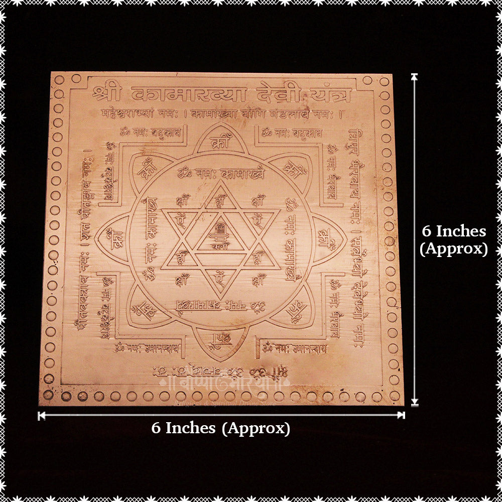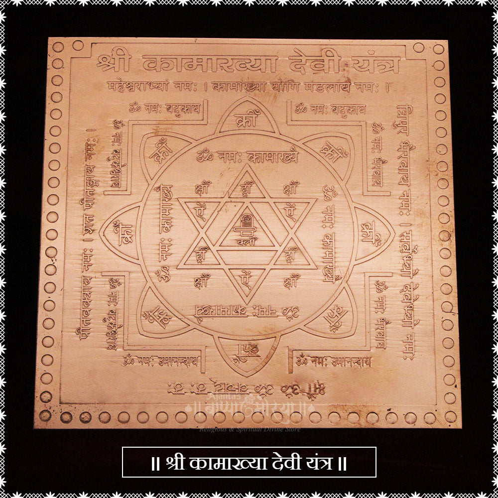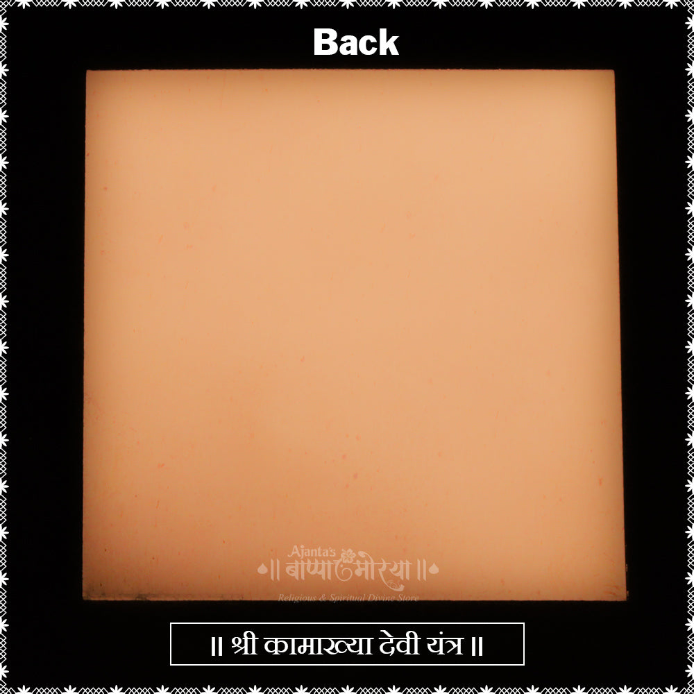 Authentic Kamakhya Devi Yantra: Sacred copper yantra engraved with powerful mantras dedicated to Maa Kamakhya for spiritual upliftment and divine blessings.