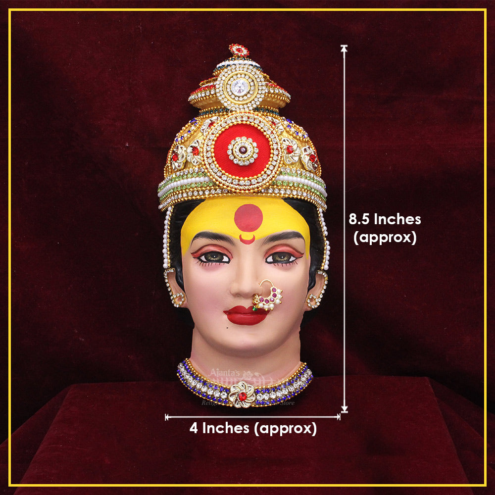 Sri/Shree Mahalaxmi Devi Mukut Divine Mahalaxmi Face – Handcrafted Mata Mukhavata for Home Temple, Navratri & Puja Decoration Traditional Devi Face Murti for Mandir & Festival Worship (DESIGN 1)