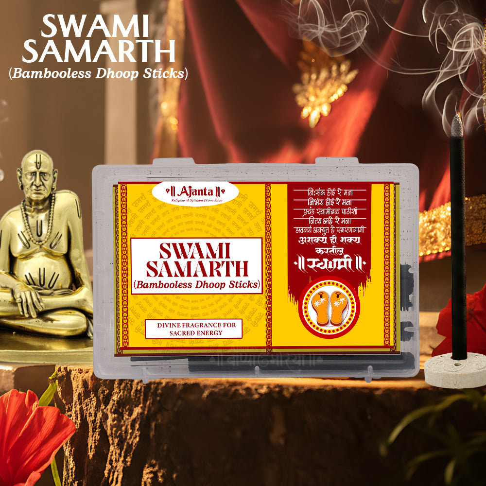 Invoke the blessings of Swami Samarth with these Bambooless Dhoop Sticks, specially crafted for spiritual rituals, pooja, and meditation. Made from natural herbs and aromatic resins, these sticks are bambooless, providing a clean burn, long-lasting fragrance, and smoke-controlled experience for your home, temple, or meditation space.
