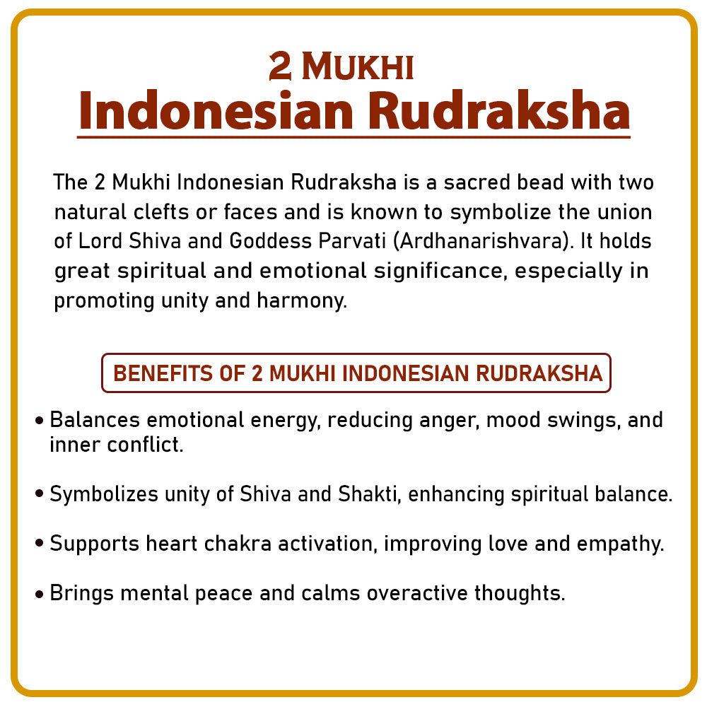 Authentic Indonesian Two Mukhi Rudraksha: Handpicked from Java forests, Indonesia, ensuring purity and spiritual potency.